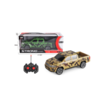A 1:16 scale remote-controlled camouflage pickup truck, designed with a realistic body structure, rugged camo pattern, and durable wheels for smooth driving. The toy truck delivers a strong visual appeal for kids who enjoy military-themed RC vehicles and adventurous play. It includes a wireless remote controller with dual joysticks and an antenna for easy handling, responsive steering, and fun outdoor or indoor driving action.